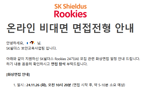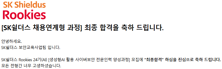 안녕하세요! SK Shieldus Rookies 24기 AI보안과정 합격 후기입니다 😊😊