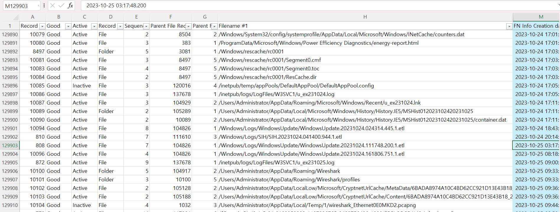 위의 코드를 cmd에 입력해 MFT파일을 CSV파일로 변경해 내용 확인 가능