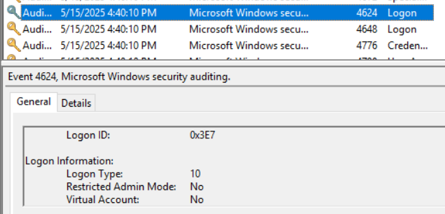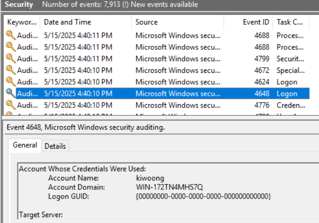 EVENT ID, Login Type 등을 보고 누가, 언제, 어떤 행동을 했는지 확인