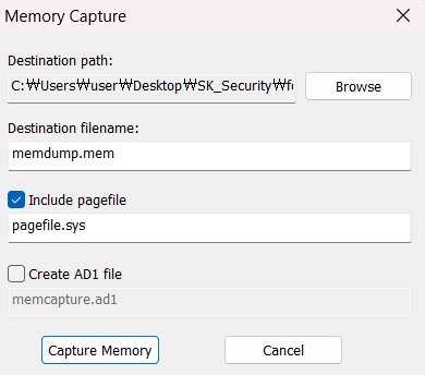 페이지파일도 함께 메모리 캡쳐 진행