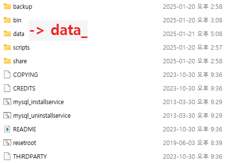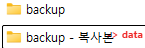 이렇게 항목이 있을텐데, 여기에서 기존에 있던 data폴더의 이름을 다른걸로 바꾸어준다. (나는 data_로 바꿈!)